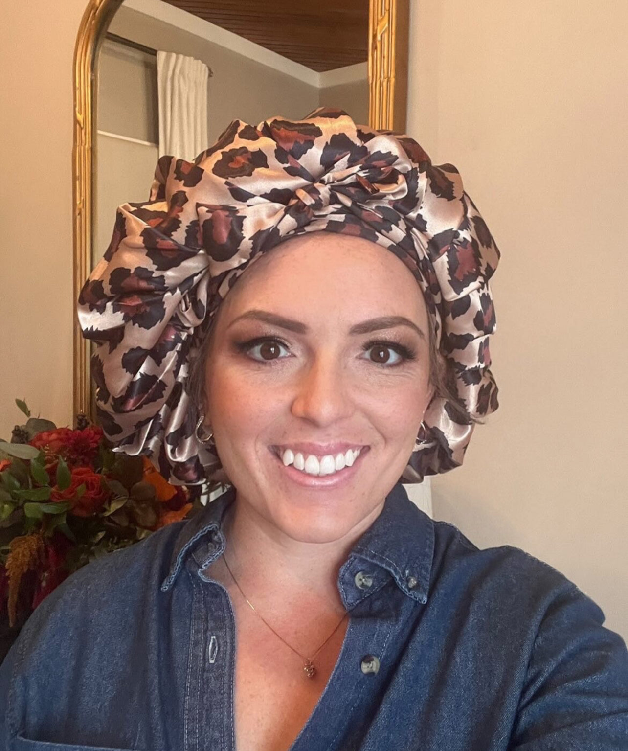 You will feel the luxury in our gorgeous double-lined satin cheetah leopard print bonnets. Each bonnet is lined with a matching colored premium silky satin blend lining. These bonnets make great gifts!