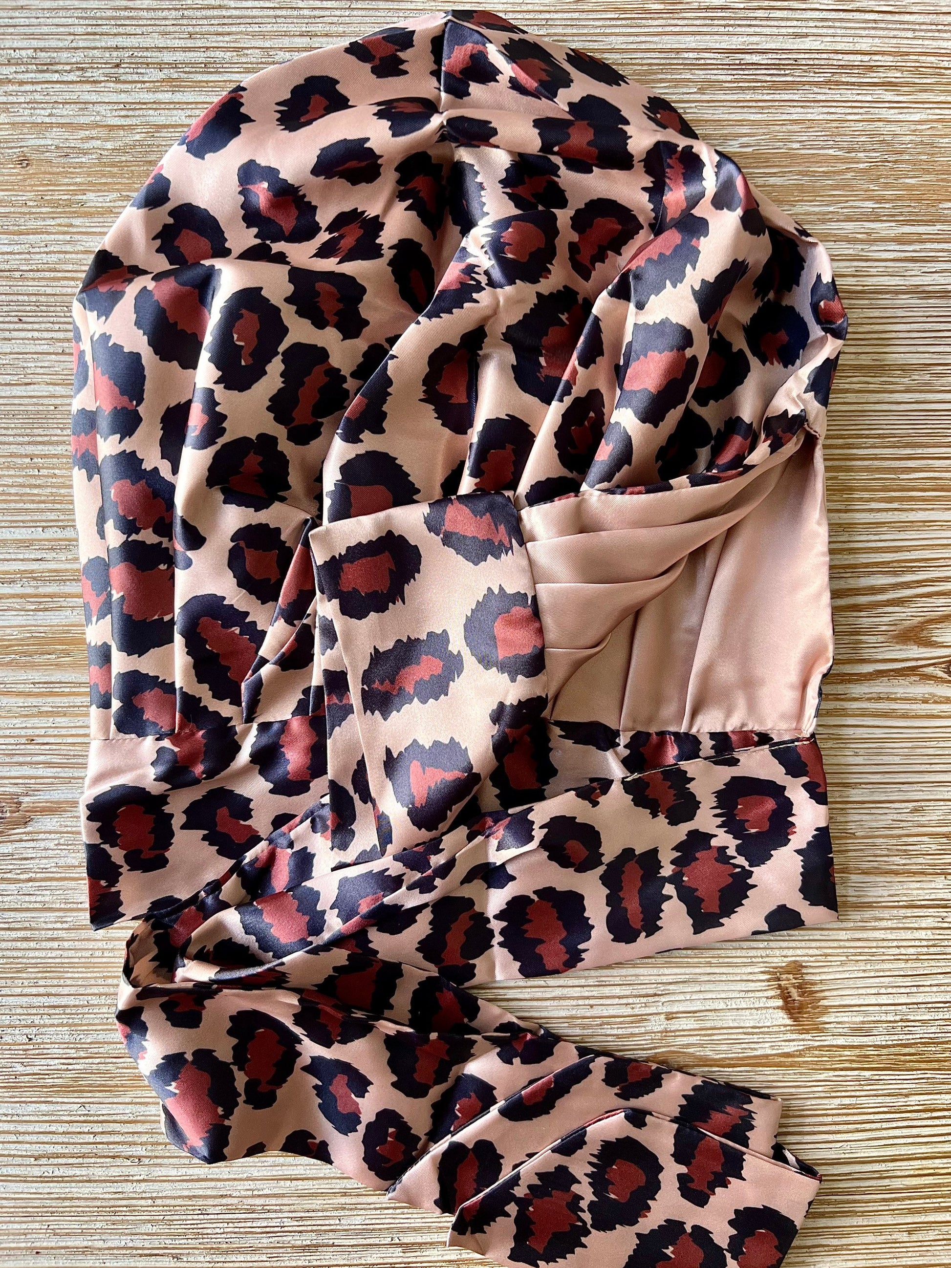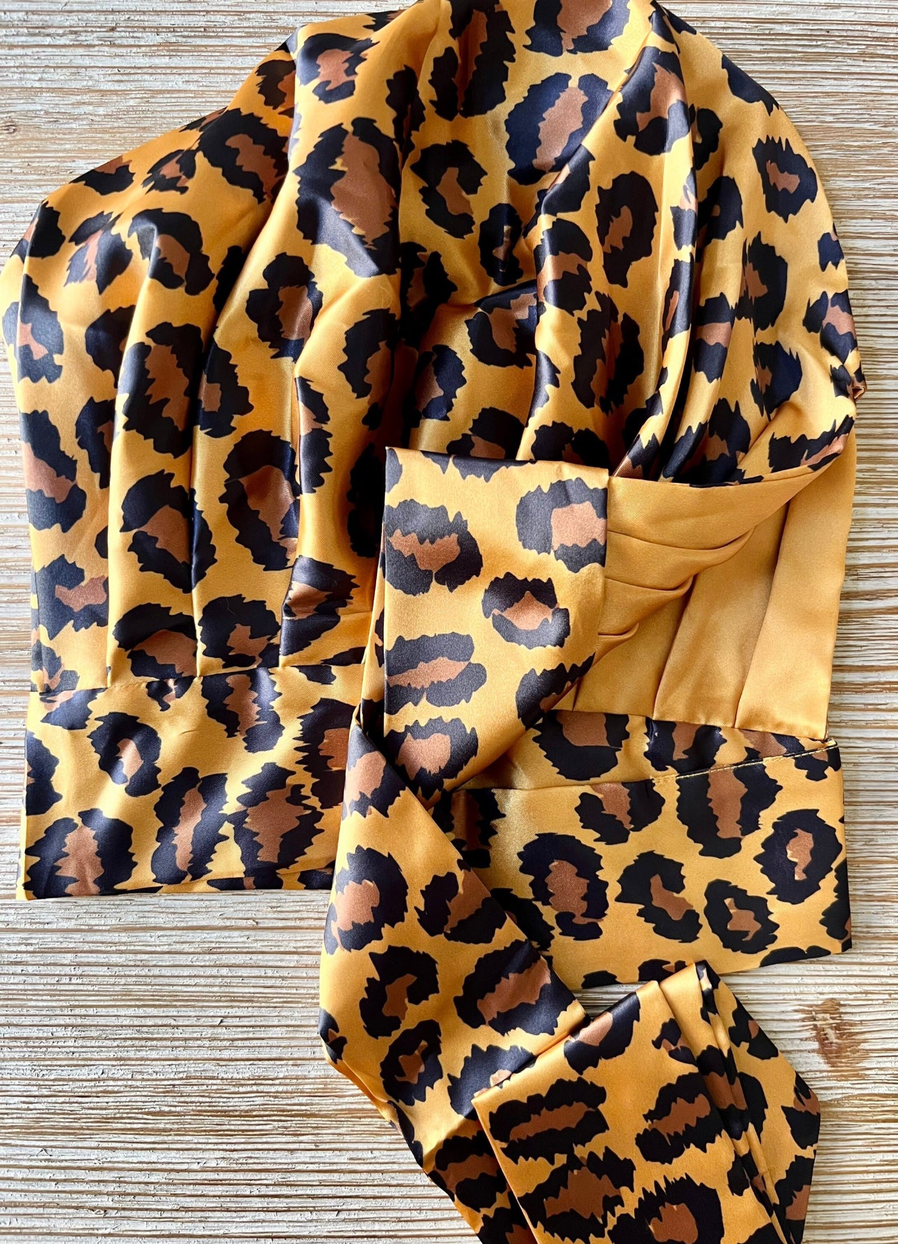 Feel gorgeous, regal, and luxurious in this beautiful leopard print bonnet.